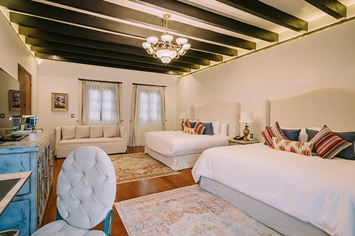 Disfrute de la amplitud y comodidad de esta habitación con sus seres queridos. Cada una de ellas cuenta con dos camas para asegurar su descanso. Además, algunos de estos espacios cuentan con balcón privado, ideal para experimentar la quietud de la casona cuya construcción inició en el siglo XVI.